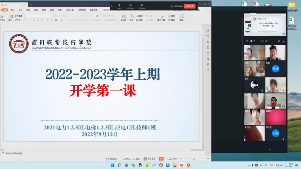 最后,全体辅导员以喜迎二十大、回顾党的历次全国代表大会、疫情防控知识、安全教育、心理健康等内容为题,分班组织了开学第一课。